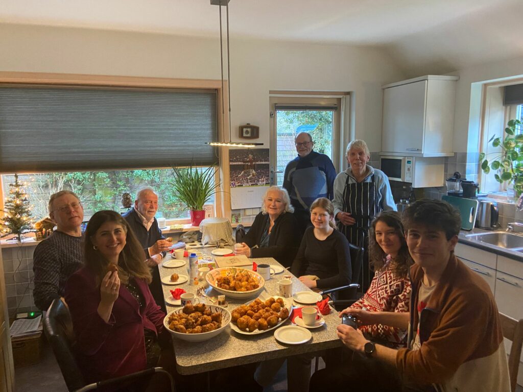 Ieder jaar op Oudjaarsdag bak ik ongeveer 600 oliebollen voor familie, vrienden, buren en kennissen. Om de 2 uur vullen andere gasten mijn keukentafel. Met een gevulde schaal oliebollen voor thuis maken zij dan weer plaats voor de nieuwe shift. Een super gezellige dag.